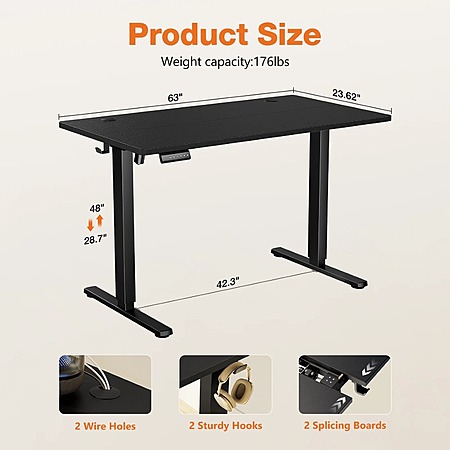Model: CONCETTA Electric Standing Desk, 63''x24'' Height Adjustable Desk, Home Office Desk with Electric Lift, Sit Stand Desk Workstation for Home Office, Black