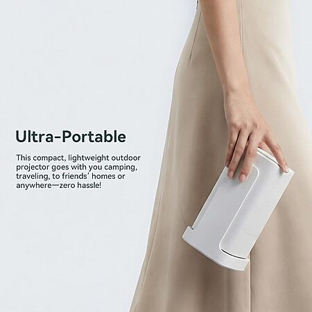 - Ultra-Portable Design: 360° flexible adjustable pocket projector, giving you a comfy viewing experience whether you're sitting up or lounging. The durable stand also protects the lens from dust and bumps when stored. Its compact, lightweight build lets you slip it into your bag effortlessly-take the outdoor projector camping, traveling, to friends' houses, or move it between rooms with ease. The minimalist design fits any space, making it a sleek addition to your workspace or living room.
