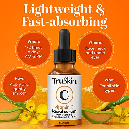Model: TruSkin Vitamin C Serum for Face, Anti Aging Serum with Hyaluronic Acid, Vitamin E, Organic Aloe Vera and Jojoba Oil, Hydrating & Brightening Serum for Dark Spots, Fine Lines and Wrinkles, 2 fl oz