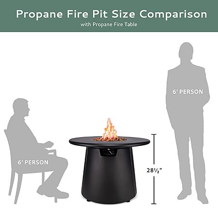- PERFECT SIZE FOR PATIOS AND BACKYARDS: Measuring 28.5" x 28.5" x 27.5" with a powerful 40,000 BTU heat output, this propane fire pit is ideal for patios, backyards, and outdoor spaces. Its sleek design complements any modern décor.