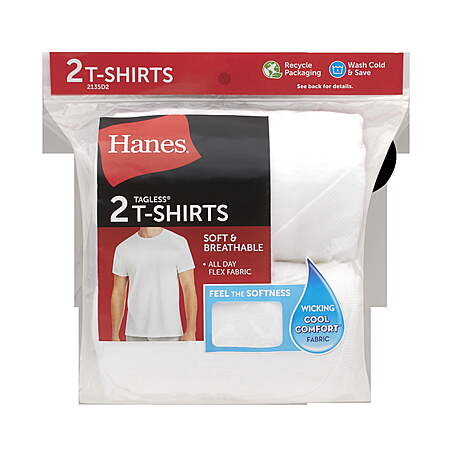 Hanes Men's T-Shirt Packs, Stay-Tucked Soft Cotton Undershirts, White, 2-Pack - $3.50 @ Walmart