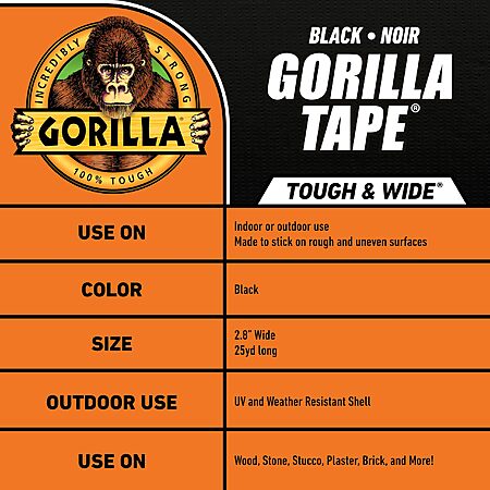 [AC] $12.73: Gorilla Tape Tough & Wide, Black Tape, 2.88" x 25 yd (Pack of 1) - Heavy Duty and Weather Resistant for Indoor or Outdoor @ Amazon