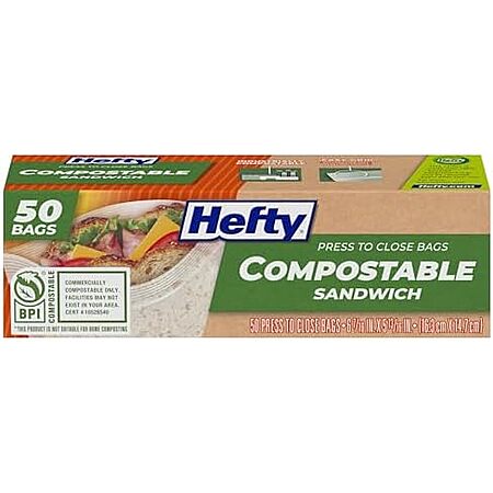 [S&S, AC] $5.50 | 2 × 50-Count Hefty Compostable Sandwich Bags ($2.75 each) at Amazon
