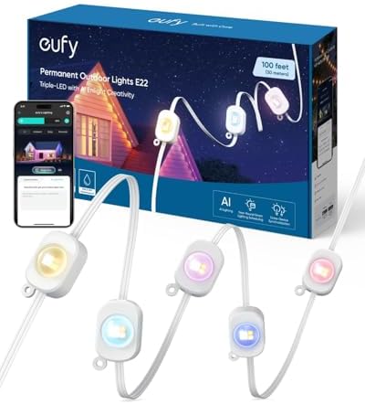 Model: eufy Permanent Outdoor Lights E22, 50ft with 30 Triple-LED Lights, Smart RGBWW for Christmas, Daily and Holiday, IP67 Waterproof, AI Lighting Themes for Christmas Decorations, Links with Cameras