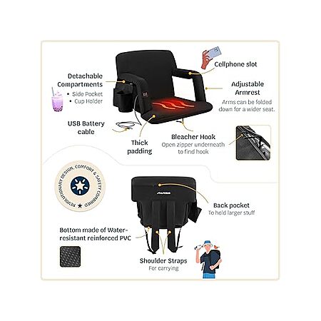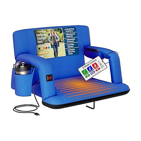 Alpcour Heated Reclining Stadium Seat w/ Armrests & Side Pockets (Various Colors): Wide $48, Extra-Wide $55 + Free Shipping w/ Prime