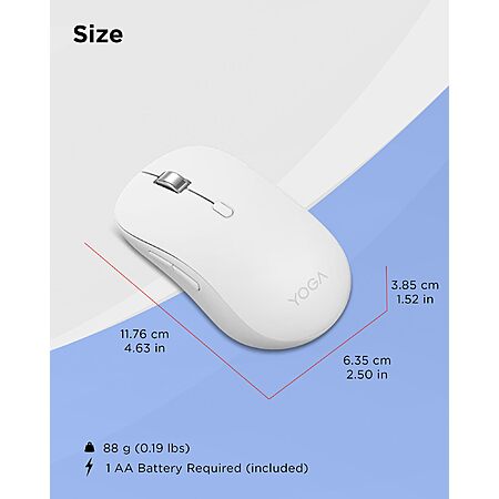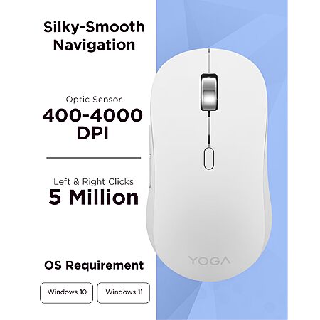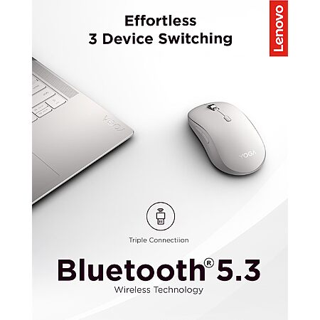 - One mouse, three devices: Equipped with convenient Bluetooth 5.3, this mouse connects to three devices simultaneously—ideal for multitaskers. Whether you're in a crowded café or office, it performs reliably across all major operating systems, with Swift pairing for non-Yoga devices and tap-to-pair for Yoga PCs