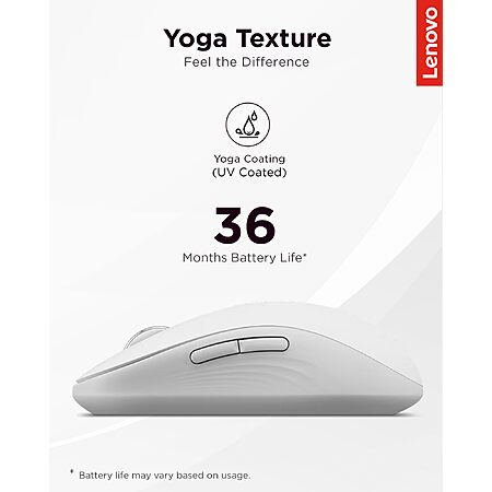 - Quality you can feel: Wrapped in soft-touch coating and made to last over 1,000 days on a single battery, this mouse redefines quality and comfort. It's been tested and trusted to uphold Lenovo's uncompromising standards because you deserve technology that's as incredible as you