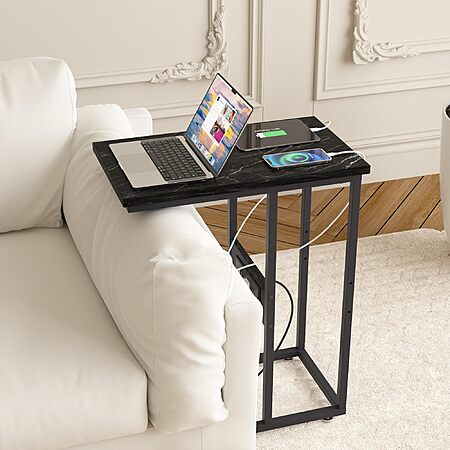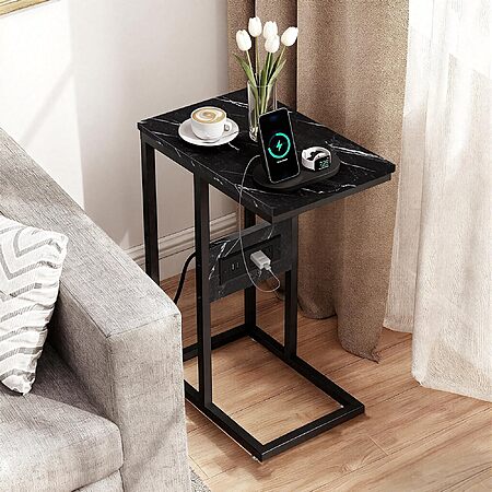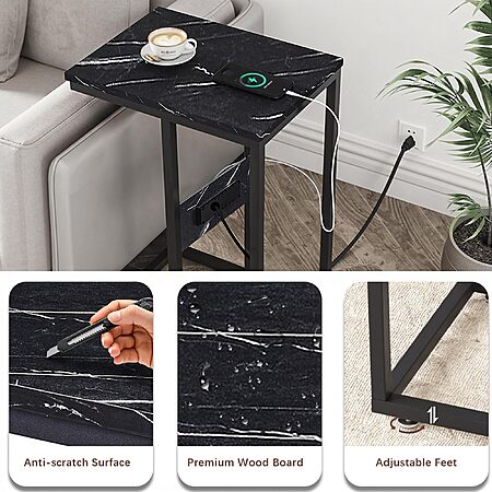 Amazon.com has VECELO C-Shaped End Side Table with Charging Station & 2 USB Ports and Outlets for Living Room, Bedroom, with Adjustable Feet for Couch Sofa, Bedside, Small Spaces, Black Marble on sale for $20.27 when you click the coupon.