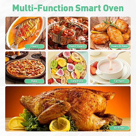 - Versatile 8-in-1 Steam Air Frying Oven: Seamlessly switch between 8 functions - Air Fryer, Steam, Rapid Steam, Bake, Bake & Steam, Ferment, Dehydrator, Cleaning, Offering a multitude of culinary possibilities