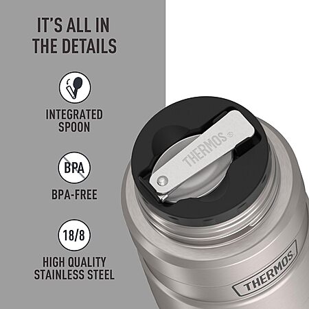 16-Oz Thermos Stainless King Food Jar w/ Folding Spoon (Matte Stainless Steel) for
