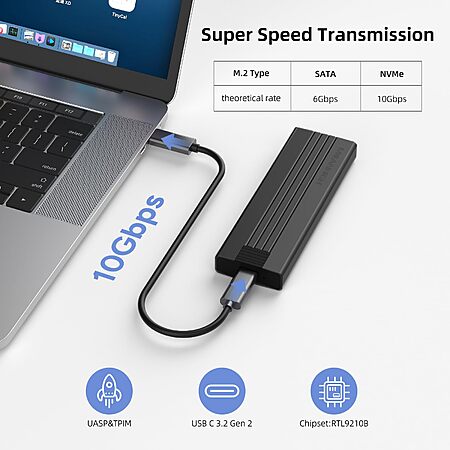Amazon.com has M.2 NVME SATA SSD Enclosure, Tool-Free USB 3.2 Gen 2 10Gbps NVME to USB Adapter, Supports M and B&M Keys External Solid State Drive Case for Size 2242/2260/2280(Up to 8TB) on sale for $11. - now $11.98