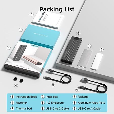 $11*:MEANHIGH M.2 NVME SSD Enclosure, Tool-Free USB 3.2 Gen 2 10Gbps Adapter, for 2242/2260/2280 (Up to 8TB)