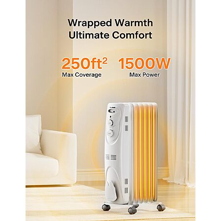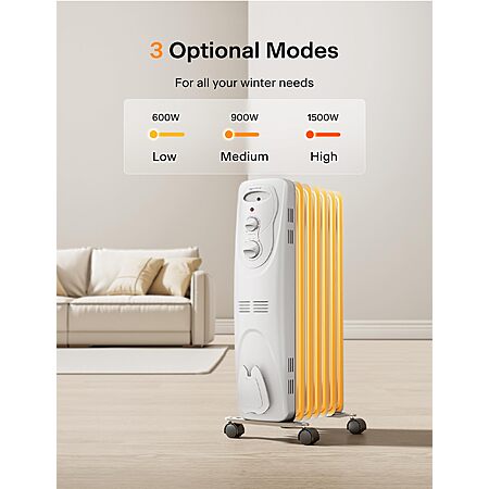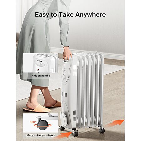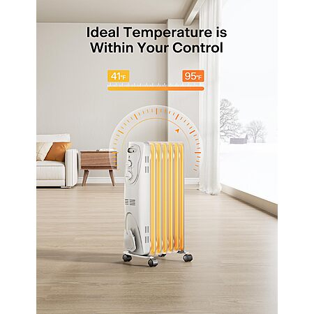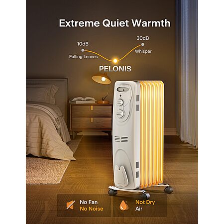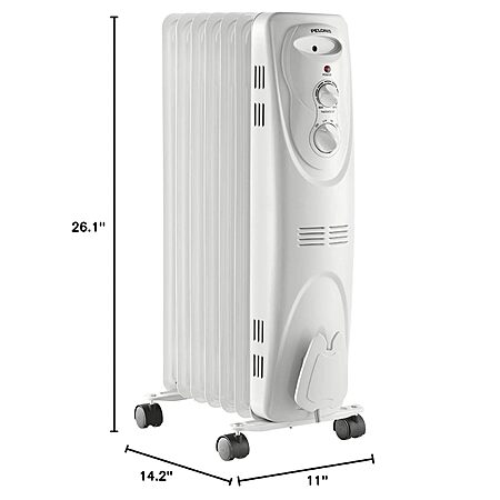 Model: PELONIS PHO15A2AGW, Basic Electric Oil Filled Radiator, 1500W Portable Full Room Radiant Space Heater with Adjustable Thermostat, White, 26.10 x 14.20 x 11.00 in