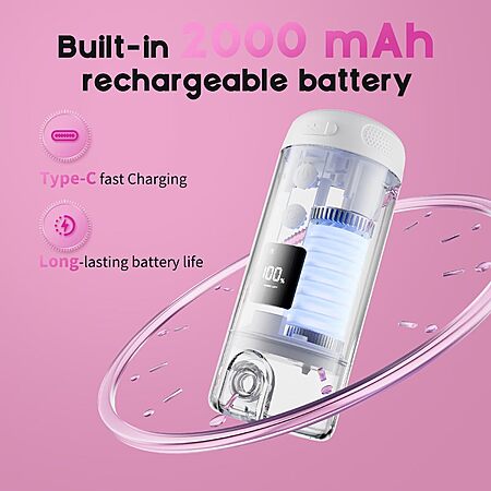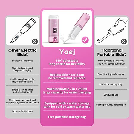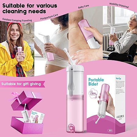 $16.99*:Portable 250ml Bidet with 5 Sprayer Modes, Rechargeable 2000mAh Electric Bidet, 8 Replaceable Nozzles for Perineal & Post-Surgery Care (White Purple)