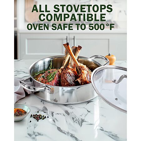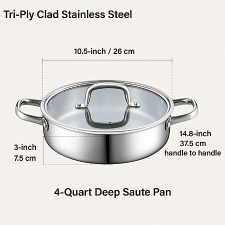 Amazon[amazon.com] has 4-Quart Cook N Home Tri-Ply Clad Stainless Steel Deep Sauté Pan w/Lid for $28.40. Shipping is free w/ Prime or on $35+. > availability will vary by location