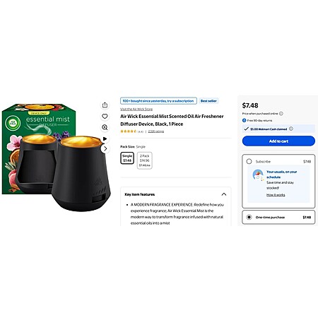 Air Wick Essential Mist Scented Oil Air Freshener Diffuser Starter Kit, Lavender and Almond Blossom, 2 Piece $9.98