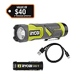 Select Stores: 600-Lumen RYOBI LED 3-Mode Flashlight w/ 2.0 Ah Battery & Cable