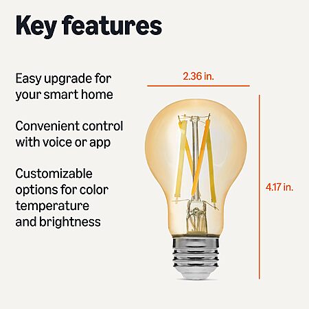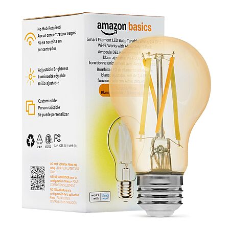 [AC] $6.78: Amazon Basics A19 Smart Filament LED Bulb, Tunable White, 2.4 GHz Wi-Fi, Works with Alexa Only, 1-Pack