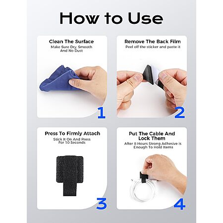 200pcs Hook and Loop Cable Ties, gliship Adhesive Wire Management, Adjustable Cable Straps Cord Wrappers Keeper Cord Holder, Sticky-back Cord Organizer $5.87