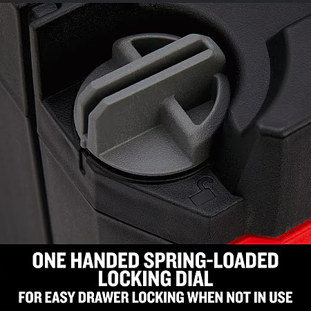 - One-Handed Accessibility - VERSASTACK toolbox features a spring loaded dial that enables users to open and close drawers one-handed and lock drawers when not in use.