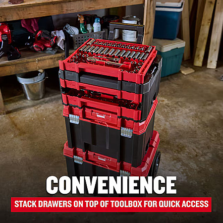 - Convenience - Stack drawers on top of the toolbox for quick access.