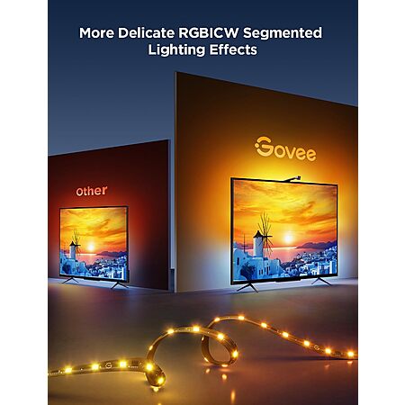 Model: Govee TV Backlight 3 Lite with Fish-Eye Correction Function Sync to 55-65 Inch TVs, 11.8ft RGBICW Wi-Fi TV LED Backlight with Camera, 4 Colors in 1 Lamp Bead, Voice and APP Control, Adapter