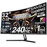 SANSUI 32 Inch Curved 240Hz Gaming Monitor High Refresh Rate, FHD 1080P Gaming PC Monitor $169.99