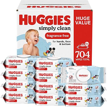 11-Pack 64-Count Huggies Simply Clean Baby Wipes (Fragrance Free) for $17.29 - 25% when you 'clip' the