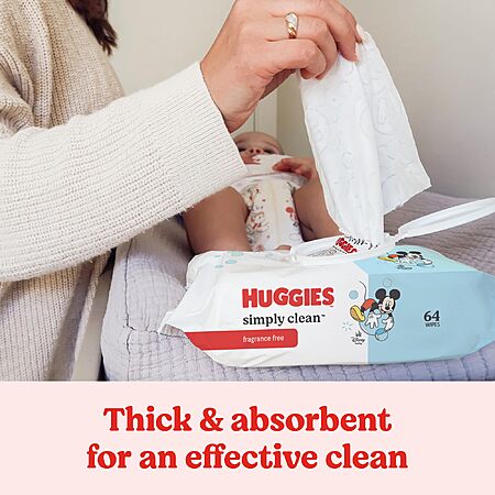 Huggies Simply Clean Unscented Baby Diaper Wipes, 11 Flip-Top Packs (704 Wipes Total), $12.11 or less S&S Clip Q YMMV
