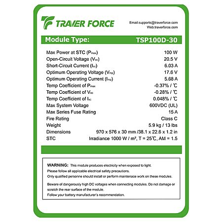 YMMV Traver Force Solar Panel 100 Watt 10BB Monocrystalline 12V High Efficiency with Power Charger Off-Grid Black 2-Pack 100W $64.37 AC
