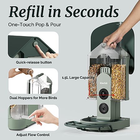 Model: Kiwibit Beako™ Smart Bird Feeder with 4K Camera Solar Powered for Outdoors - Ultra HD Live Stream, Enhanced AI Identification 10,000+ Bird Species, Real-Time Motion Detection, Easy Setup & Refilling