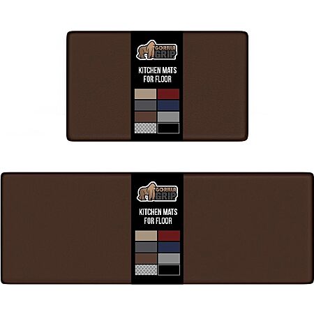2-Pack GORILLA GRIP Comfortable Cushioned Kitchen Mats (17x24 + 17x48) Brown
