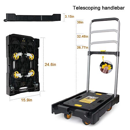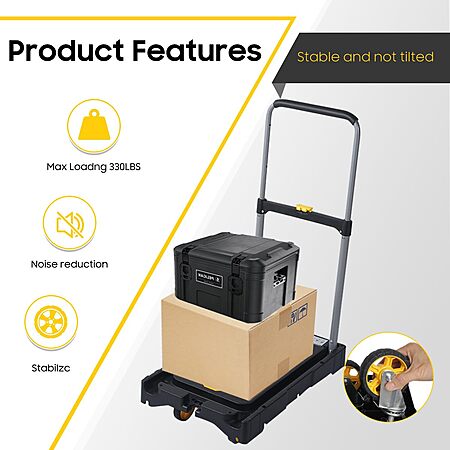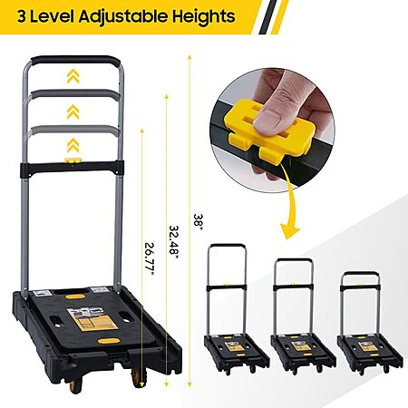 LEADALLWAY Heavy Duty Folding Platform Hand Truck with 3 Height Adjustments, 300 lbs Capacity - $19.99