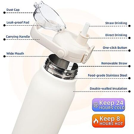 Model: BJPKPK Insulated Water Bottles with Straw, 45 oz Stainless Steel Metal Water Bottle with One-handed Opening Lid, BPA Free Reusable Jugs for Gym Sports Outdoors,White
