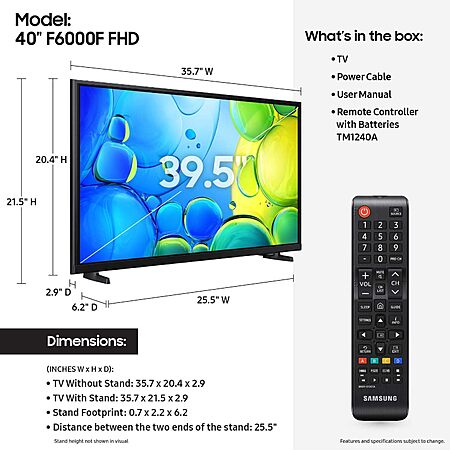 40" SAMSUNG Class Full HD F6000 Smart TV (2025) $147.99 + Free Shipping