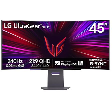 LG 45GS95QE Ultragear OLED Curved Gaming Monitor 45-Inch WQHD 800R 240Hz 0.03ms DisplayHDR True Black 400 Tilt/Height/Swivel Stand - Black $999.99