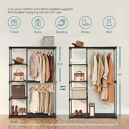 Amazon[amazon.com] has SONGMICS Freestanding Closet Organizer w/ Clothes Hanging Rods (44.1" x 16.9" x 65") for $27.06. Shipping is free with Prime or on $35+ orders.