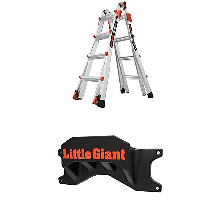 Little Giant Ladders Velocity M17 17 Ft Multi-Position Aluminum Ladder with Wheels, Type 1A, 300 lbs Weight Rating + Ladder Rack Accessory, Black/Orange $261.60