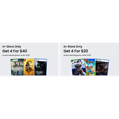 - 4 for $40 pre-owned games under $20