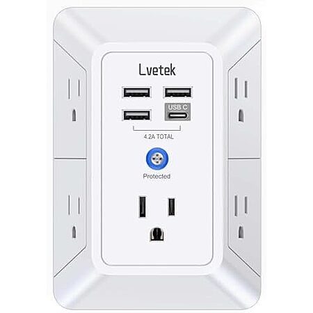 $8.98* | Lvetek Wall Outlet Surge Protecter (5x outlets, 3x USB-A, 1x USB-C) at Amazon