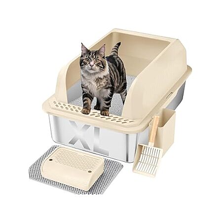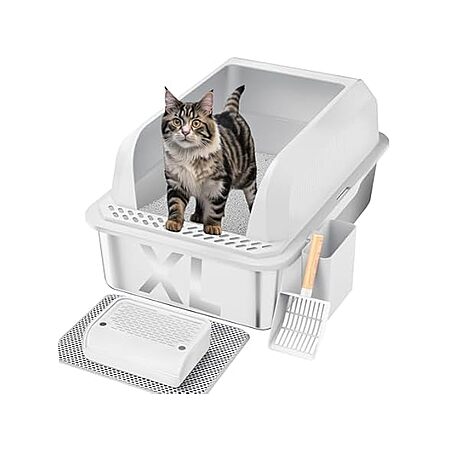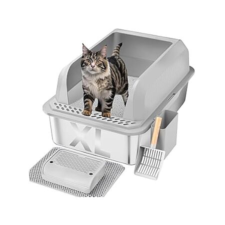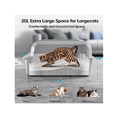 - Extra Large Size: Ideal for large cats, the XL stainless steel litter box (23.7 x 16 x 11.6 inches) has a 20-liter capacity, reducing the need for frequent cleaning. Enjoy up to 30 days of use without worrying about changing litter.