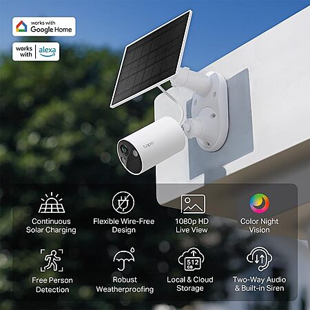Tapo TP-Link SolarCam C402 Kit, Outdoor Battery Camera w/Solar Panel Base, Wireless, 1080P, Free Person Detection, SD/Cloud Storage, Color Night Vision, No Hub Needed $39.98