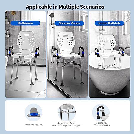 Model: Shower Chair for Seniros Elderly Handicap Disabled or Bariatric Adults with Arms and Back, Bench Seat for Inside Shower stall and Bathroom Bath Tub Seats Adjustable Stool Heavy Duty 500 lbs sit Chairs