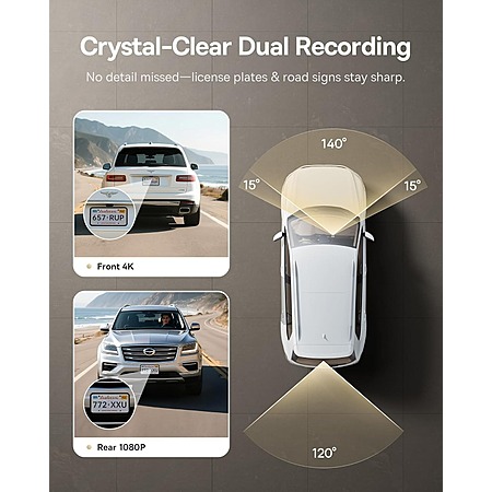 • 4K Front + 1080P Rear Dual Simultaneous Recording