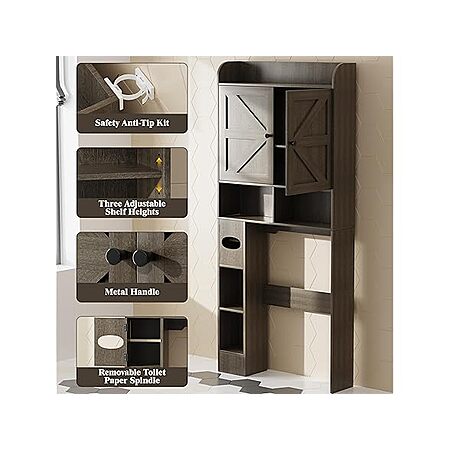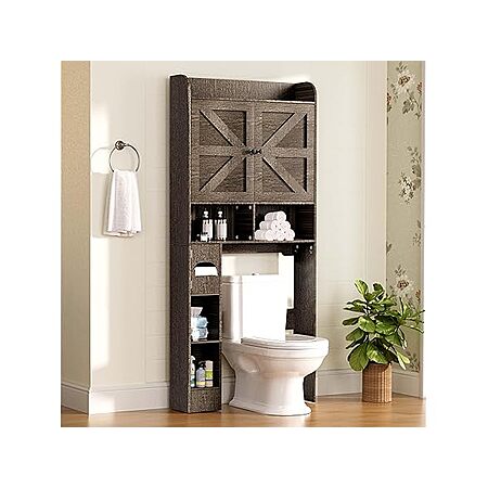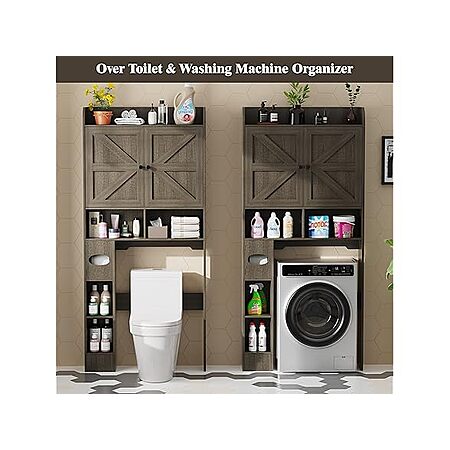 Vipbear Wooden Over The Toilet Storage Cabinet w/ 2 Barn Doors & Adjustable Shelf (Dark Grey) $69.99 + Free Shipping w/ Prime