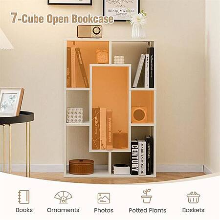 7-Cube Costway 36.5" Geometric Modern Open Bookshelf w/ Anti-Toppling Device (White) $46.18 + Free Shipping