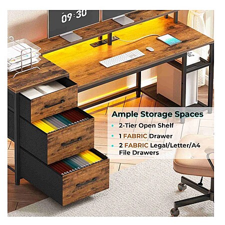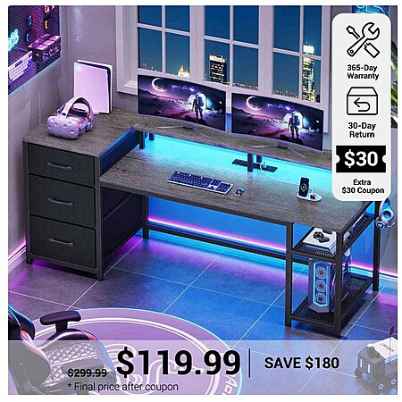 SEDETA_59 Inch Reversible Computer Desk Home Office LED Gaming Table with File Drawers & Storage $119.99 AC + Shipping
