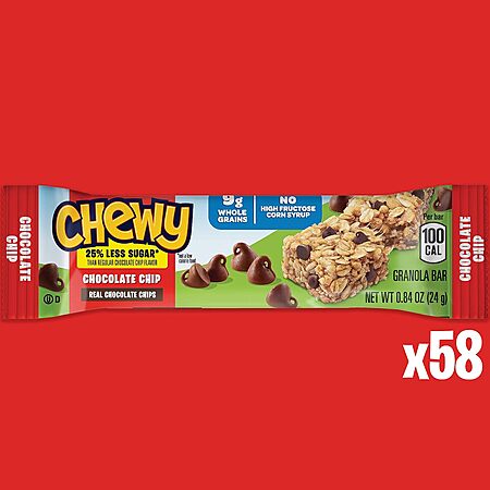 Quaker Chewy Lower Sugar Granola Bars, Chocolate Chip, 58 Count~$10.02 With S&S @ Amazon