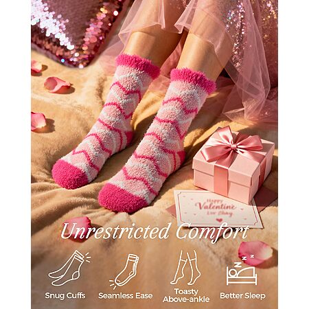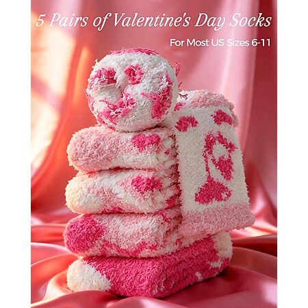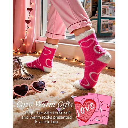TEHOOK Valentines Gifts, Warm Fuzzy Cozy Fluffy Soft Socks, Pink Heart Socks for Valentines Basket Stuffers $9.99