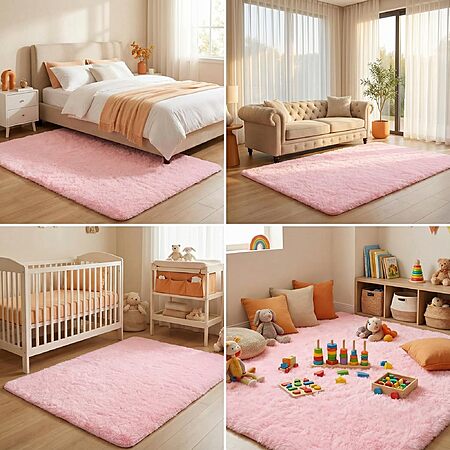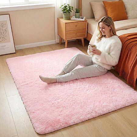 duduta Pink Fluffy Rug 4x6 ft, Shaggy Plush Carpet (pink or grey) - $12.49